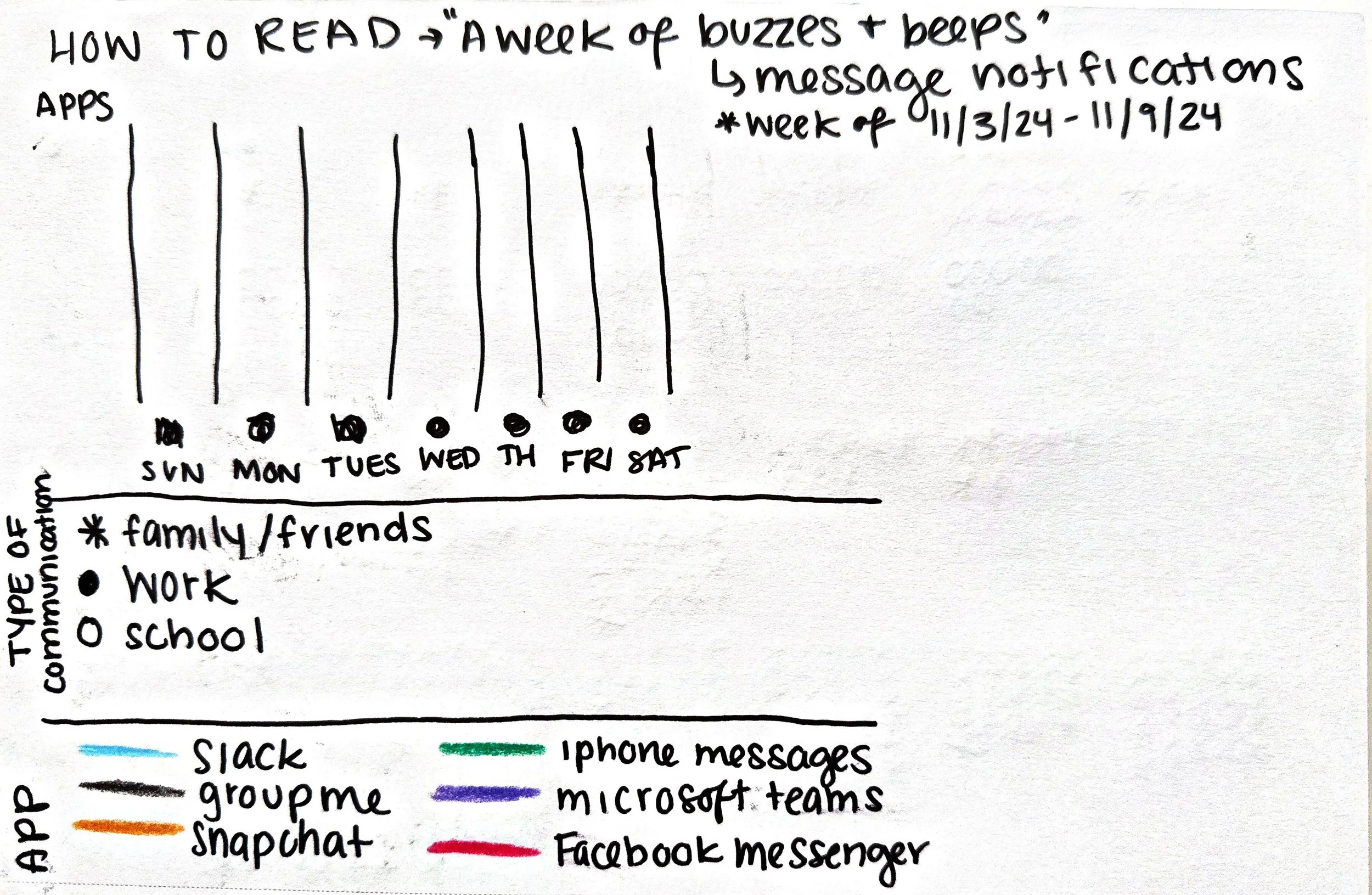 Inspired by the project Dear Data, these projects reimagine my personal data by creating visual, hand-drawn illustrations and turning everyday information into personal, artful storytelling.